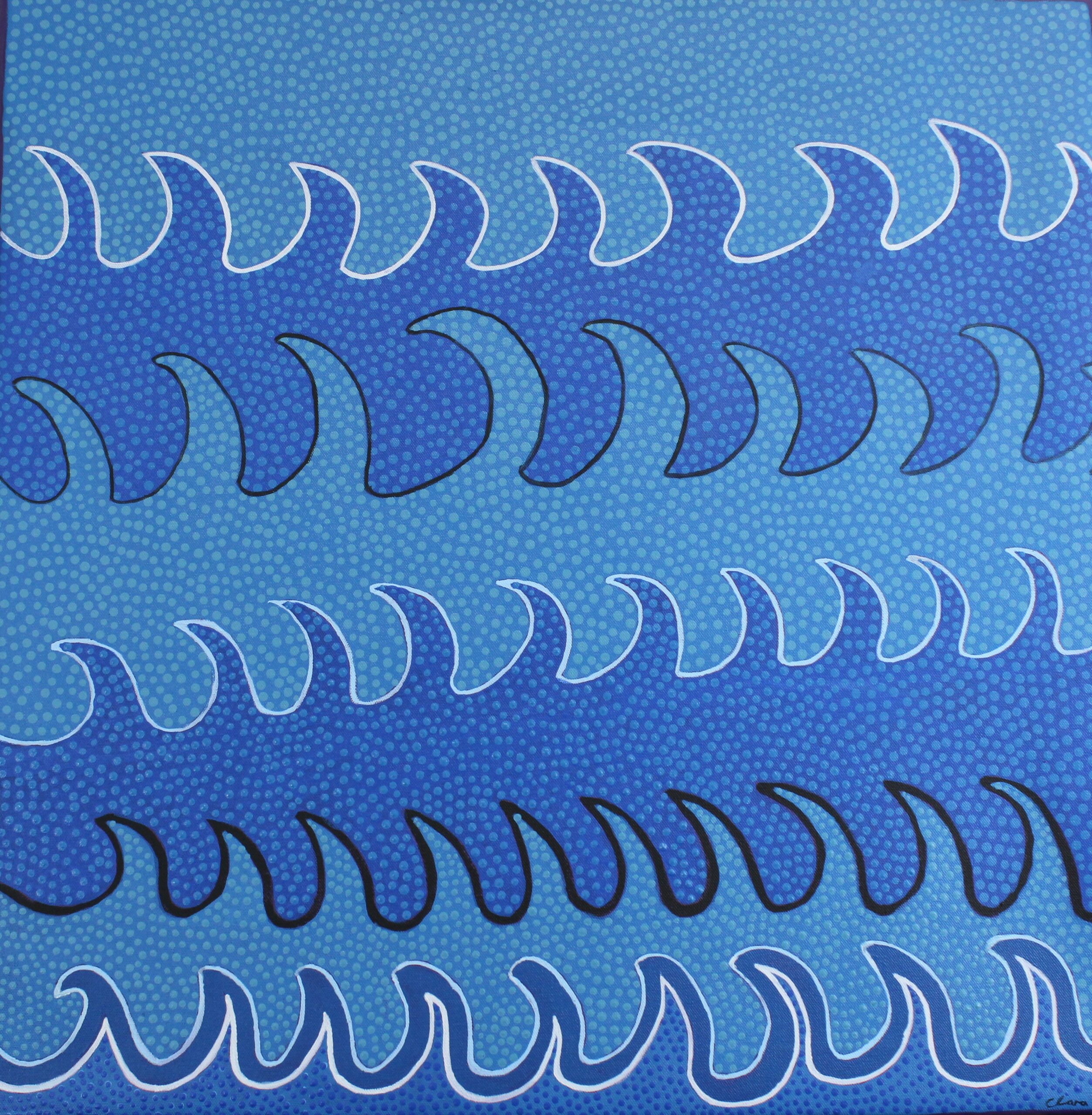 This is a painting about Rurmu (waves) which is my Mother’s dreaming. My mother is from the Yanyuwa Saltwater people.