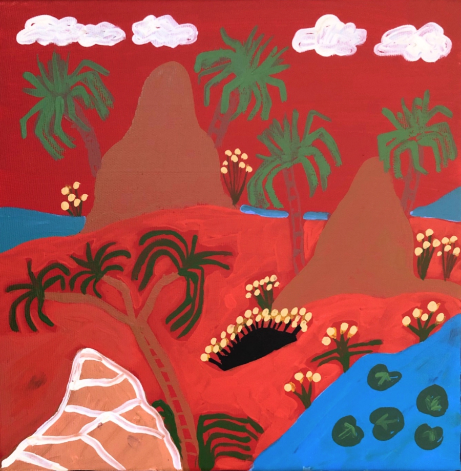 Vivid wild flower paintings reflect a connection to country that goes back for many, many generations. These paintings are both a reflection of the artists own observation of the country around her, and also her learning as she listens to the stories of her elders.
